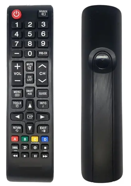 Controle remoto compatível com a maioria dos televisores da marca Samsung comercializados atualmente no mercado.