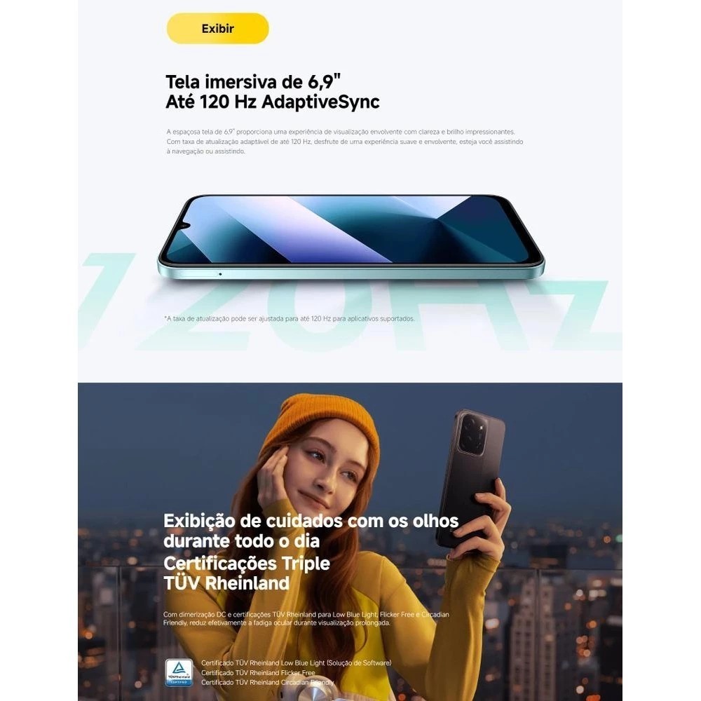 6.9" Dot Drop Full HD+ com taxa de atualização de 120Hz